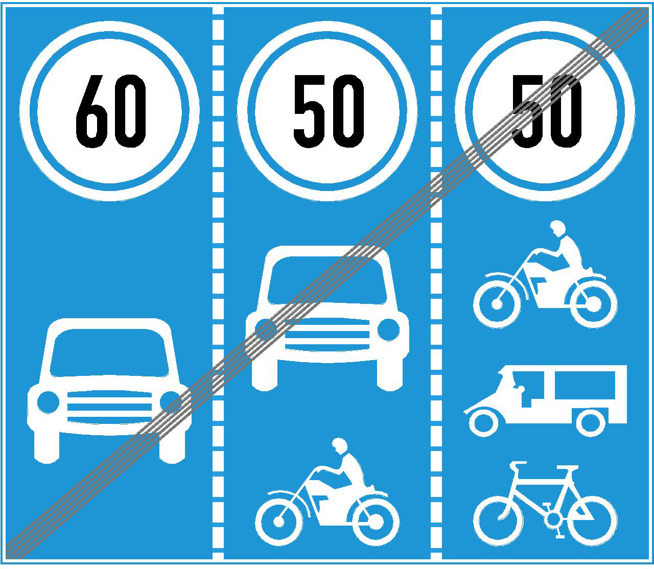 P.127c | Biển ghép tốc độ tối đa cho phép theo phương tiện, trên từng làn đường | Các loại phương tiện | Không cấm | Phải đi đúng làn đường và tuân thủ tốc độ tối đa cho phép trên làn đường đó. | |||